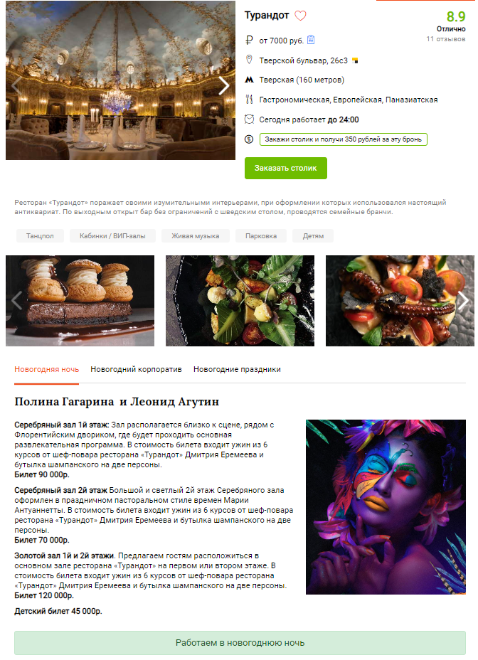 В некоторые заведения мы уже отправили по 15–20 заявок (на 20, 40, 50, 70, 150, 300 человек). Они сейчас в ожидании, и мы рассматриваем новые заведения для наполнения новогодними корпоративами.