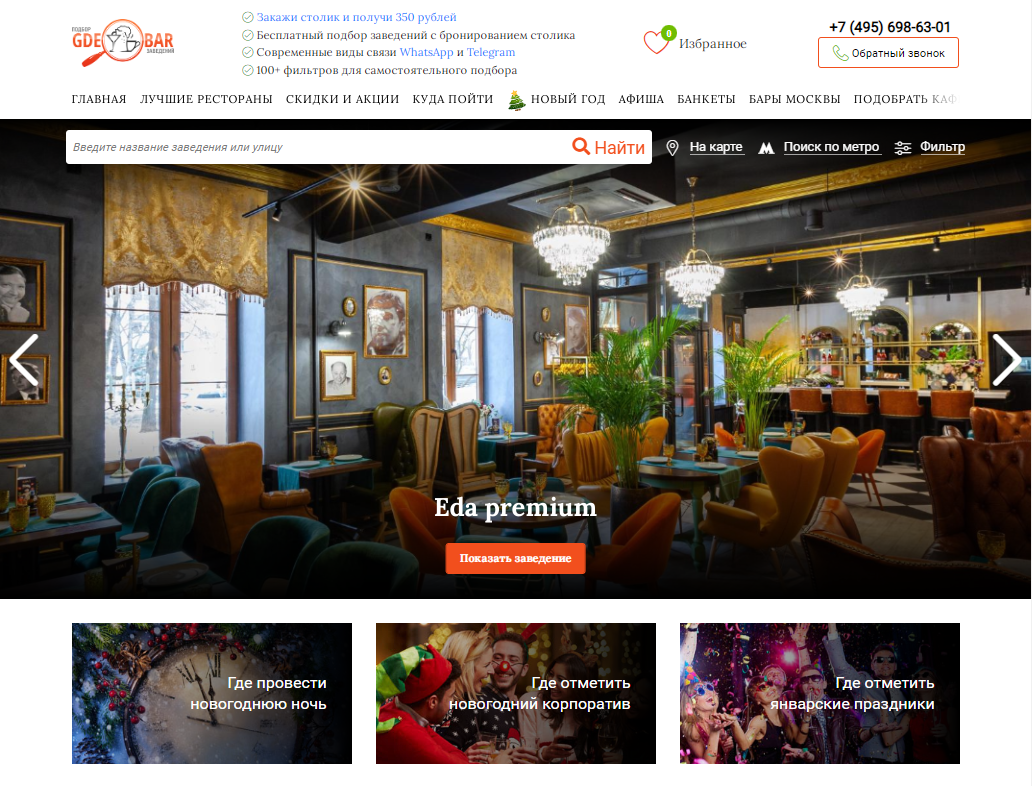 Рекомендации вашего заведения операторами Call-центра при подборе площадок под банкеты и новогодние мероприятия гостям
